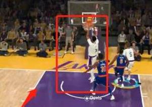 2、然后我们这时向篮筐下跑位,在篮筐范围内,而且队友的眼神也看着你,这是个很好传空接的机会。