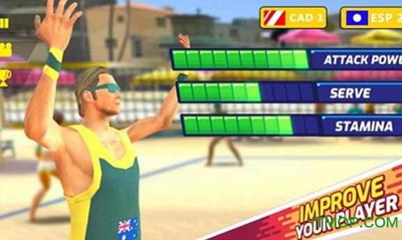 精彩十足的沙滩排球 竞技游戏 ,多种不同类型的游戏场景随意切换,动感节奏背景音乐常伴左右。