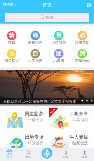 本着服务小区邻里的宗旨,开通包括邻里说说,邻里活动,五险一金查询,小区送水,小区跳蚤,优惠券,积分,蔬菜特价等互惠沟通邻里的功能。