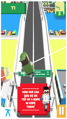 行走不要跌倒是一款沙盒风格的游戏,呆萌迟钝的游戏人物配上走钢丝这种游戏玩法,让游戏变得非常鬼畜,玩起来异常魔性,游戏中有多个人物角色可供你选择,不要害怕,人生总会跌倒,要勇敢前行!欢迎下载体验!
