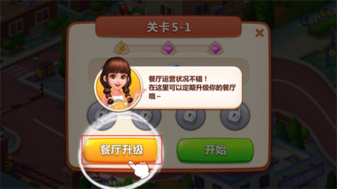 3、解锁新的餐厅,全力赚取更多的金币,升级和打造顶级的餐厅。