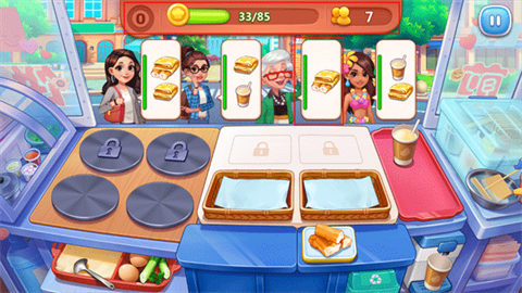 3、为你的餐厅进行升级,解锁煎饼锅,加快食物的制作,放置更多食物。