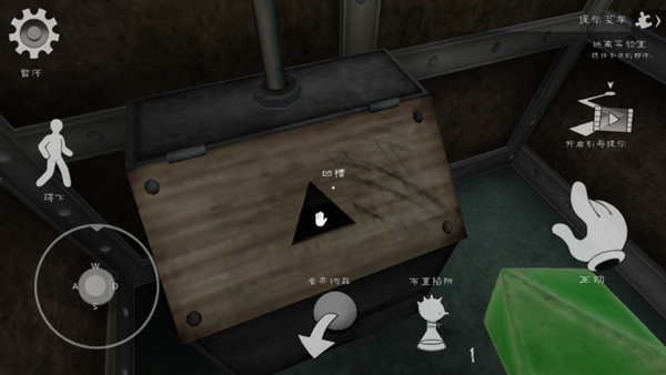 6、之后回到之前的箱子拿起绿色的三角体,抬头寻找绿色三角体的标志。