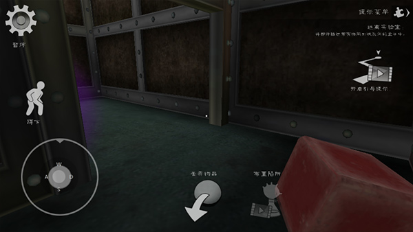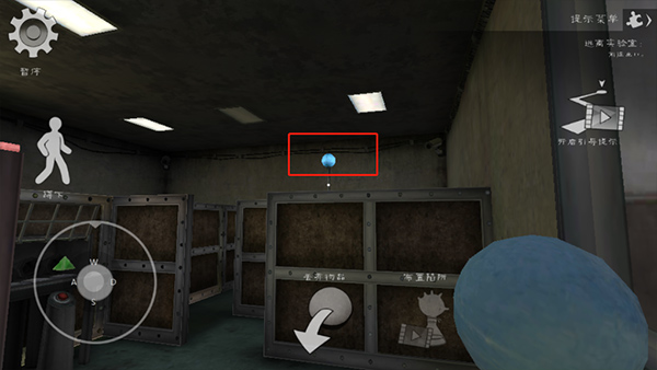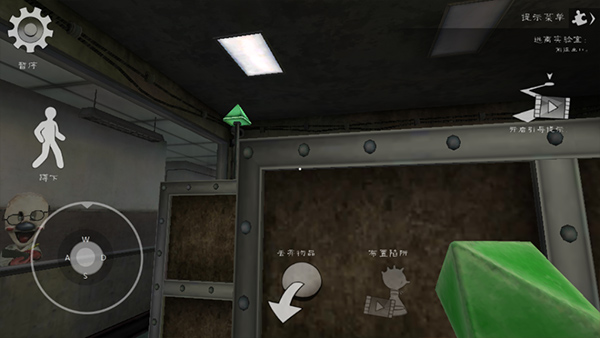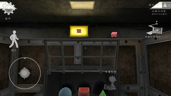 4、接下来我们往那个显示红色正方体的荧屏走去吧,在这个路途中你会看到一个低矮的入口,这时可进行蹲下操作。