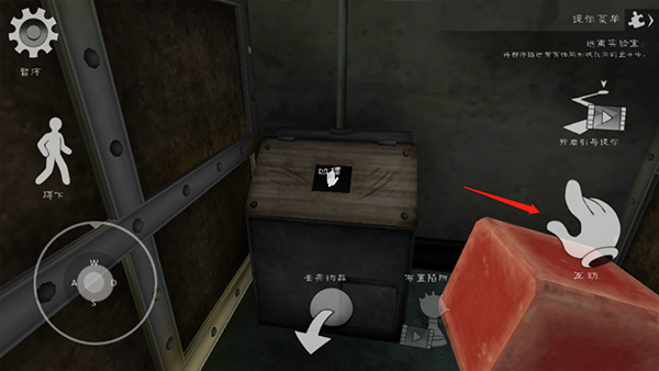 5、找到正方体凹槽之后,对准点击互动将手里的东西放进去。