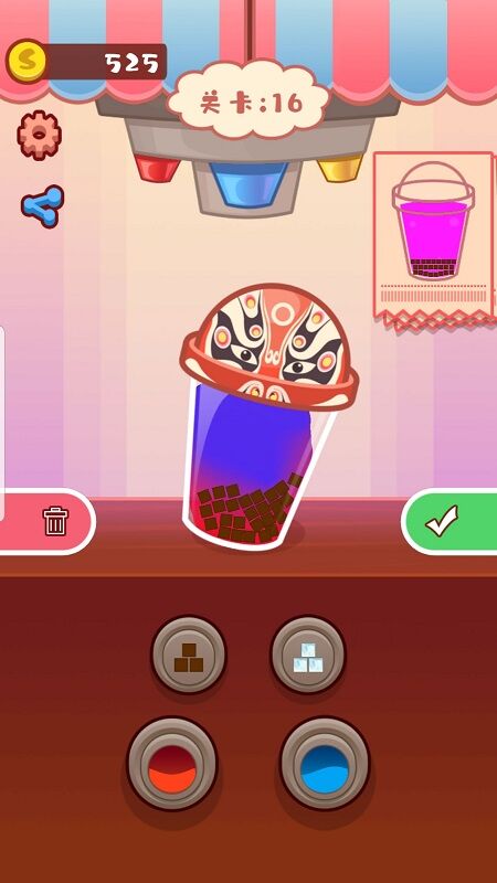 玩家可以添加不同颜色的饮料液体混合,还可以为饮料添加珍珠和冰块。