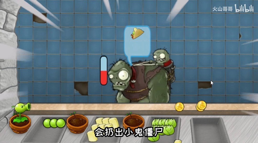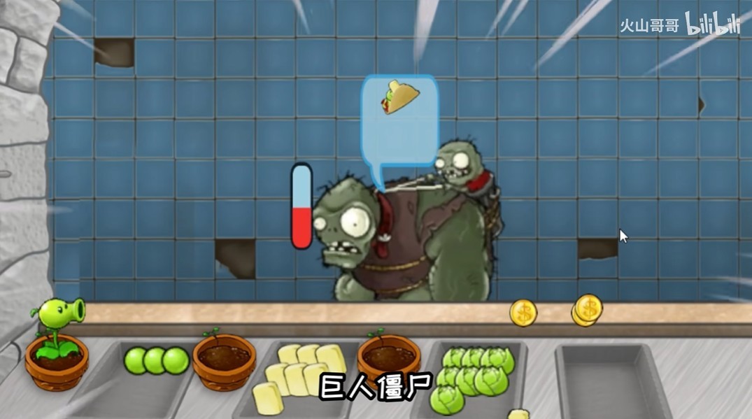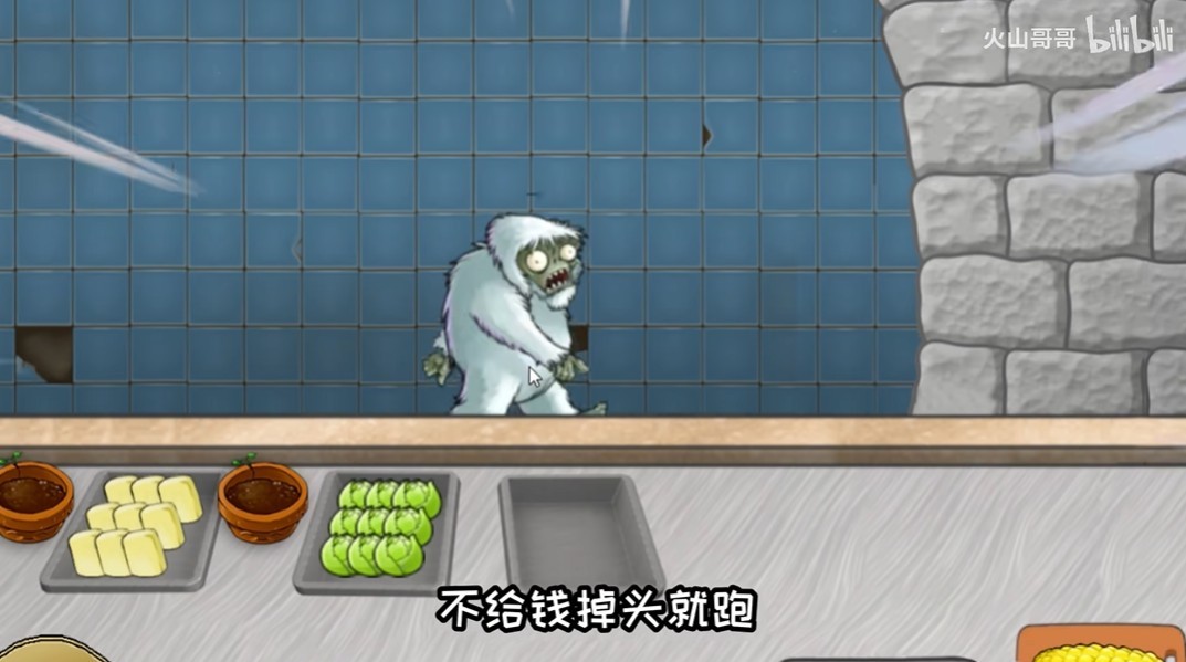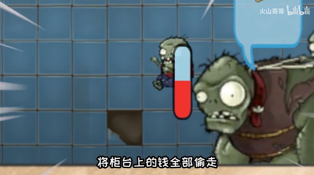 2、巨人僵尸:会扔出小鬼僵尸,将柜台上的钱全部偷走,相当于原版的小偷。