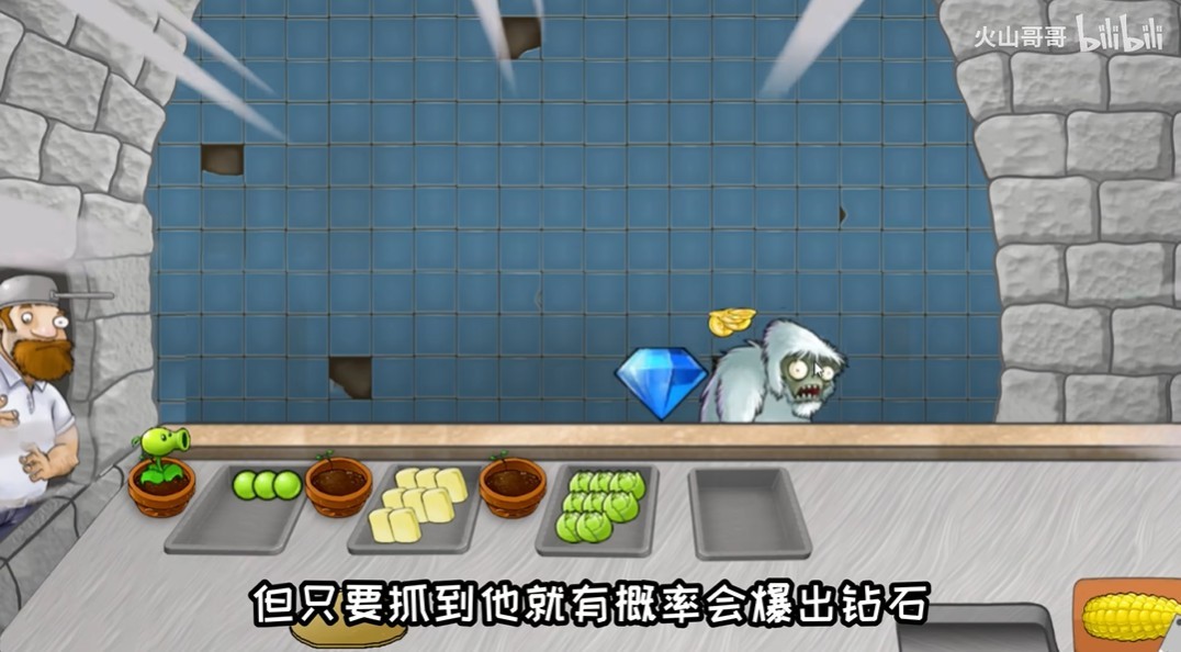 3、雪人僵尸:吃了沙威玛后会不给钱就直接走,但只要抓到它就会有概率爆出钻石,相当于原版的乞丐。