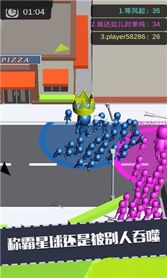 2、多人在一个地图场景中进行奔跑吞噬竞技,紧张刺激的竞技过程,给玩家难以言喻的体验乐趣。