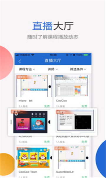 1.直播课程,支持点播,在线直播,实现和老师线上互动学习;