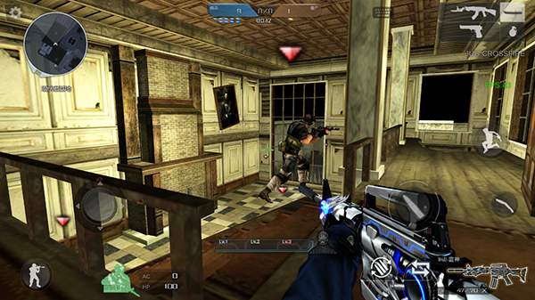 3、然后通过虚拟按键控制人物进行移动和射击。