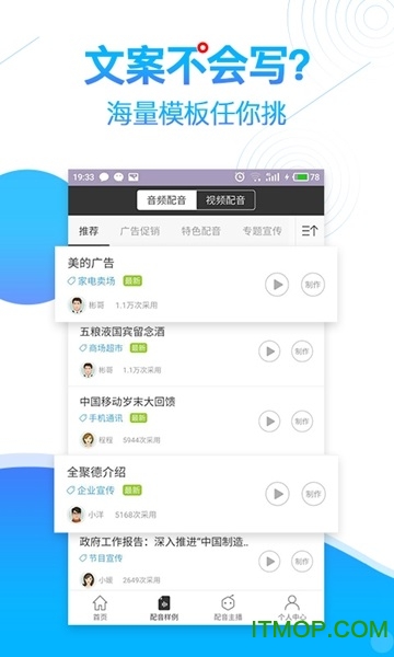 海量宣传文案免费用,不同风格优质背景音免费使用。