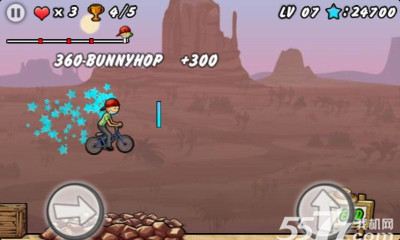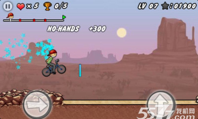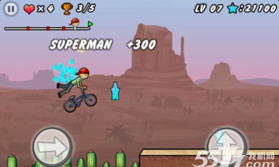 玩家需要控制自行车酷男以灵活动作躲过障碍物!吃掉中途出现的辅助宝贝会增加能量!控制单车行进只要按屏幕的提示点击即可实现!游戏途中可以加速度和跳跃!加速越快跳跃越高!动作越炫酷!可爱的农场背景与复杂的山地背景都能给人一种放松的心态!