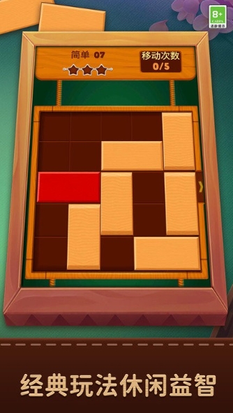 点击屏幕控制木块移动,只有让木块顺利的逃脱才能通关,每一次挑战都能看到不同的画面,也会有着不同的难度。