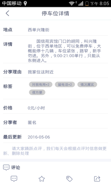 每天通过用户点评更新停车场数据,以保证数据的准确性;