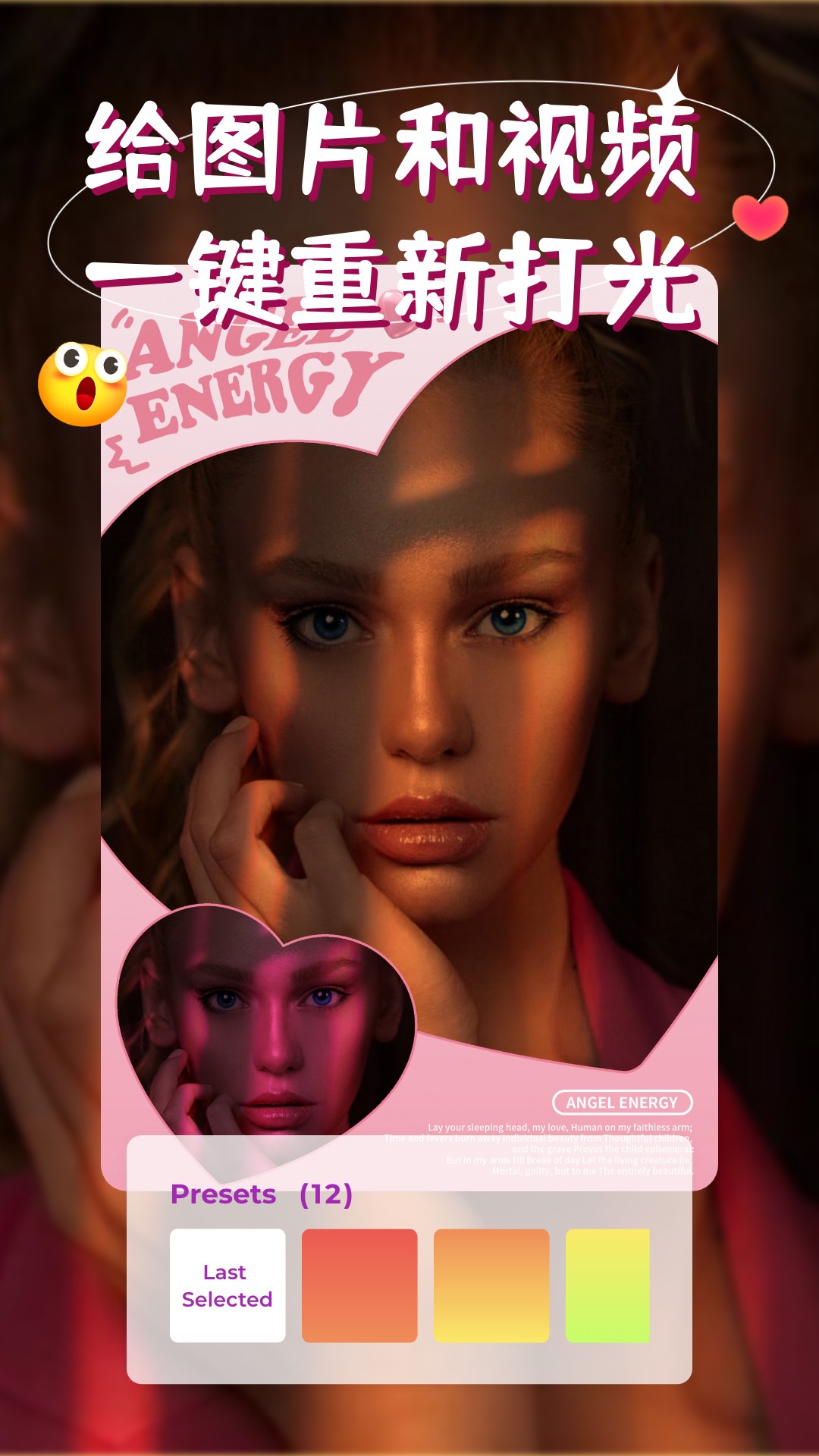 这款软件提供各种拍照场景下的光影效果,比如散光、明净、昏暗、热情、阳光等等,用起来十分方便。
