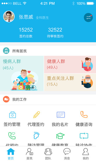 利用 i健康医生版 应用程序,可以实现三师团队监控患者健康指标,对患者进行随访干预、预约和转诊等多种管理.