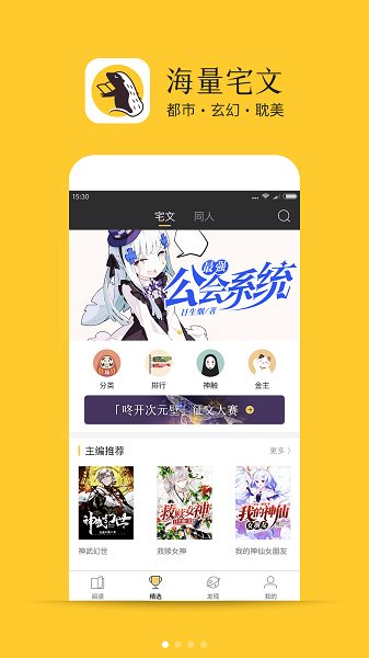 我是书咚,一个集阅(cai)读(hua)和创(mei)作(mao)为一体的泛次元原创文学平台,你想看的二次元小说、同人文,我都有!不仅如此,你还能看到海量的宅文、腐文、虐文……