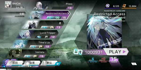 1、打开范式起源官方版,进入游戏如图,玩家可自由选择曲目,以及难度进行挑战;