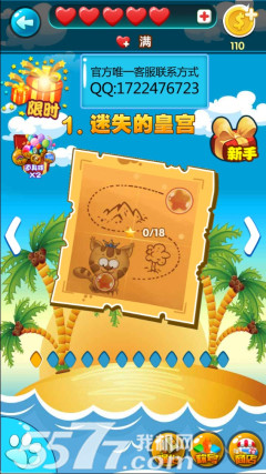 游戏开始啦,消除的越多,得分越多呢,如果有必要底部的道具也可以使用,不过前期是很简单的,基本无视道具