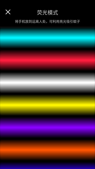 4、点击启动荧光捕蚊后还可以自由调整荧光棒的颜色,此时把手机丢到远处就行了。作为娱乐功能还不错