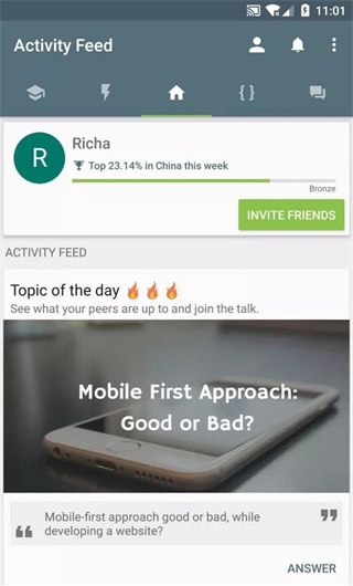 登录成功后,填写基本资料,便到达首页。这里集合了一些热门话题,然而这并没有什么卵用。