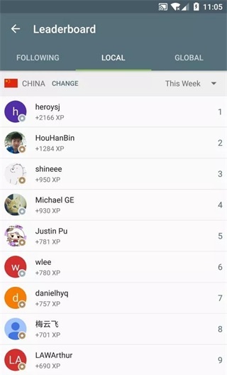 你还可以查看本地(国家或地区)和全球的排行榜。