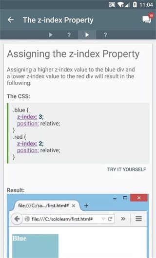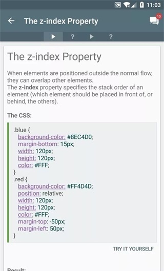 这里以学习 CSS 的“z-index”属性为例。这里介绍了“z-index”的概念,我们可以知道“z-index”是定义元素的先后顺序的。