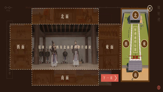 《乡射礼》交互式APP由礼学研究中心与香港的嘉礼堂文教基金会共同开发,并由香港城市大学邵志飞教授(JeffreyShaw)美术监制,通过最新的视觉互动形式,将《乡射礼》古老繁复的仪节准确而鲜活地呈现给大众。