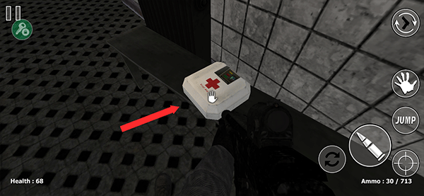6、战斗过程中,僵尸也会对玩家造成伤害,若血量不足,可在地图中找到医疗包为自己恢复生命值。