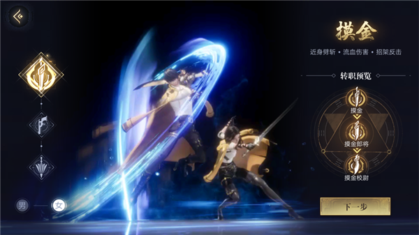 摸金以近战攻击为主,一转后有两种职业方向。