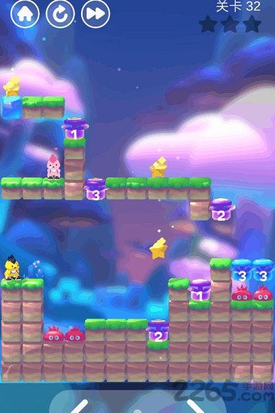 玩家在游戏中操控角色进行闯关,中途 收集 星星,而且这款游戏非常的q萌,这里是快乐的跳跳王国!每个人都有属于自己的伴侣然而这里四处是淘气的刺刺球,对于跳跳王国的居民来说是致命的,你能否帮助他们避开刺刺球,去心仪的对象身边呢?