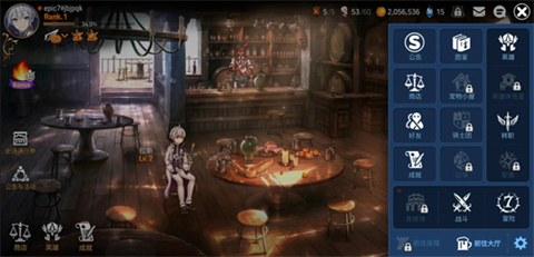 1、打开第七史诗国际服,通过新手教程后,点击右上角方块按钮。
