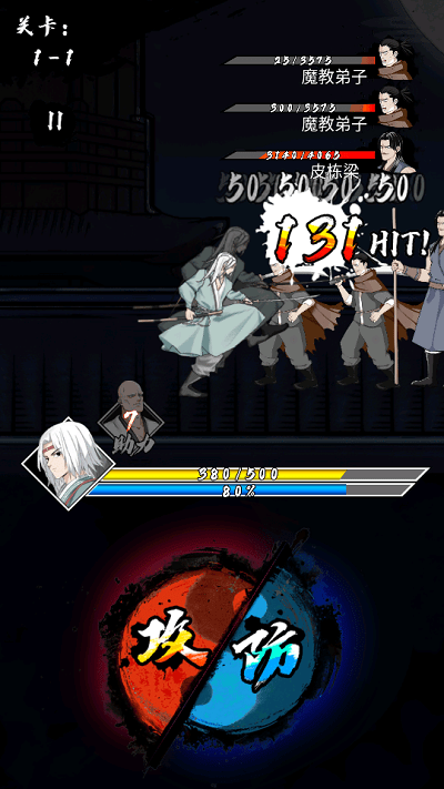 玩家需要不断的加强自己的实力,消灭关卡中的所有对手获得胜利,有很多的武器可以慢慢解锁使用,操作简单,多种不同的英雄可以选择战斗,带领你的队伍一起战斗冒险。传统的水墨画风武侠玩法,只用两个按键,进攻和防御,操作起来非常的简单有趣,开局赠送多名侠客,让你早一步就可以登顶巅峰。