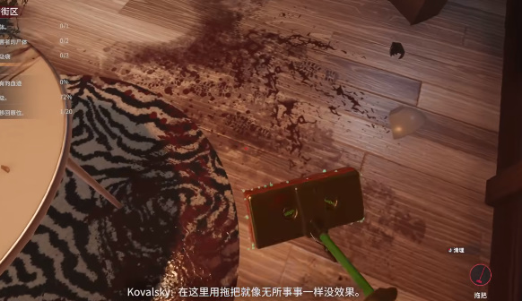 除了主线任务外,游戏中还有许多成就和秘密等待玩家发现。例如,第一次清洗血迹、抚摸家里的小狗狗、使用垃圾桶捡起100个垃圾、按下M键呼出平板的音乐界面等,都是游戏中的小挑战。