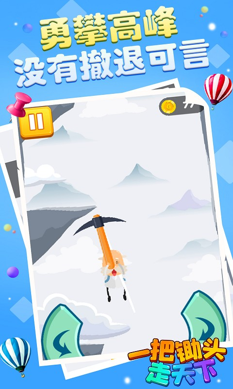 一把锄头走天下是一款非常好玩的休闲益智手游,游戏的玩法非常新颖,玩家开局只有一把锄头,你要用这把锄头翻过群山峻岭,光滑陡峭的崖壁攀爬起来异常的凶险,你要不断的挑战自己的极限,冷风刺激的环境里你没有退缩,只有继续攀爬才能到达最美的山峰。