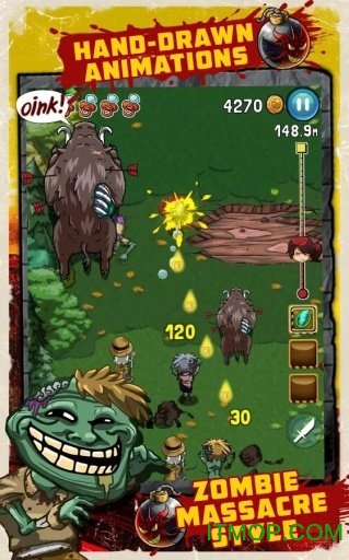 - 为了对付那些恶心的僵尸,升级你的武器,解锁新的道具.
