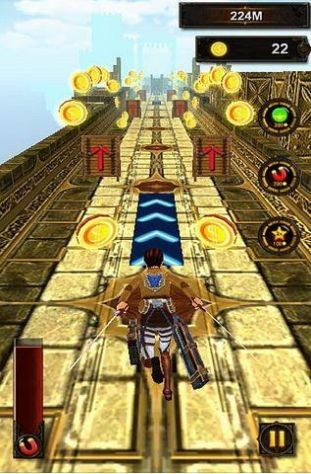 《进击的巨人跑酷》 是一款动漫巨人题材的跑酷游戏。玩家在该游戏中能够操纵角色进行跑酷冒险,游戏中的美术风格画面还是比较符合动漫原著的,给玩家带来了完美的游戏体验,通过简单的酷跑来获得奖励,有大量的金币可以拾取,并且有多种酷跑模式可以选择,想玩的玩家赶紧下载游戏来体验吧。