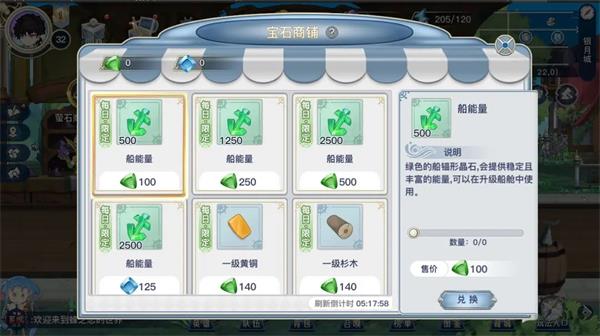 船只寻宝中获得的【普通宝石】和【高级宝石】道具,可以在银月城【宝石商铺】中兑换船只养成相关的资源,也是小伙伴们获得船只养成道具的主要途径之一。