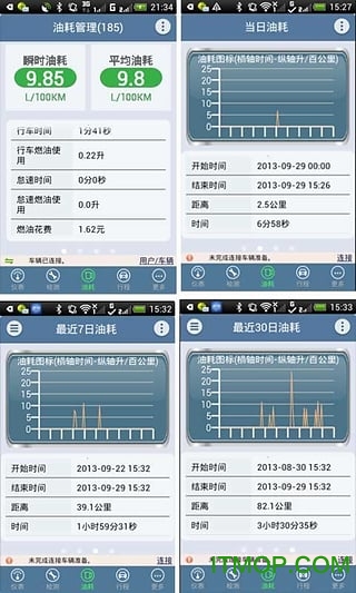 通过蓝牙与安装在汽车OBD接口上的MOBD(车况检测适配器)连接, 查看车辆运行状况、油耗情况、车辆体检情况、行程信息,实时语音进行提醒。