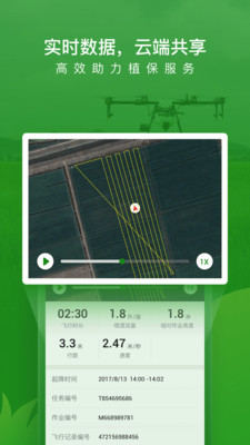 大疆农业服务平台可精确记录多种模式下的作业数据,当前航线、作业进度等详细信息可通过平台进行实时查看,远程管理更加轻松。