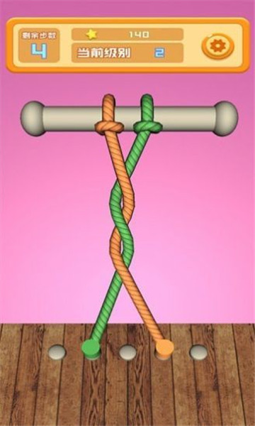 欢乐解解绳是一款休闲益智手游,利用你聪明的头脑将关卡中的绳索一一解开,仔细寻找规律和绳结的结构,将绳索更快的分开,关卡难度也会逐渐增加带来趣味的脑力风暴时间,赢得更多的胜利吧~
