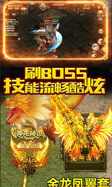 3、玩家通过挑战凶猛的boss,获取一整套属性值超高的神装。