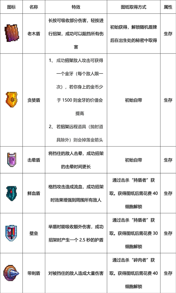 盾牌可以举起减少伤害并反击敌人,在恰当的时机瞬间举盾还可以招架、完全防御并且反伤敌人,同时弹回远程攻击。