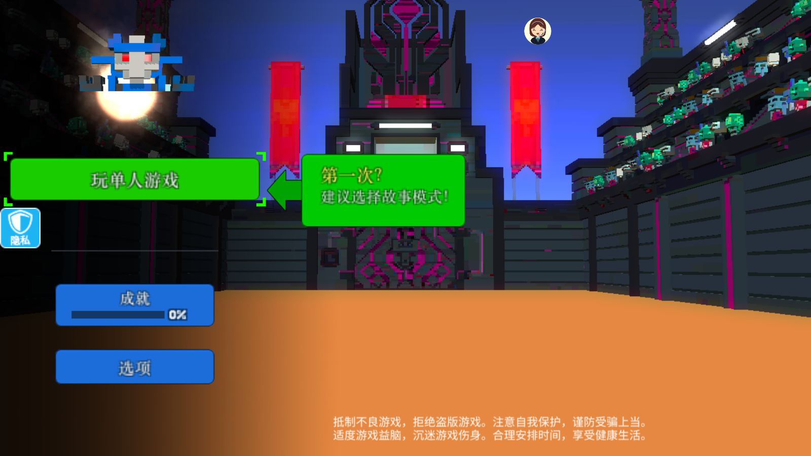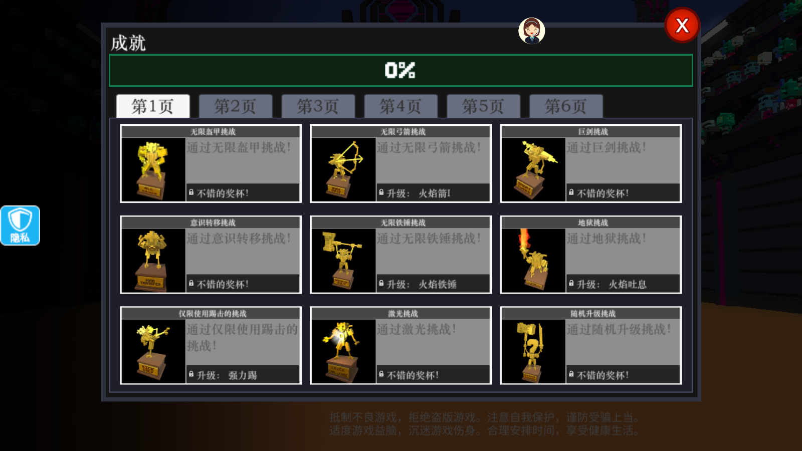 超级英雄大乱斗是一款击剑格斗类的游戏,玩家在游戏里扮演一名方块机器人,你将被电梯送往各种竞技场与多名其他对手展开格斗,获得胜利将会提升你的技能点数,技能点数可以用来提升自己的生命值、护甲值、键术、和武器伤害等等,游戏中还有成就系统,通过完成各种挑战获得奖励