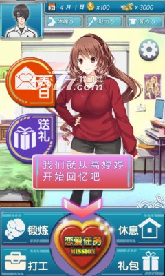 游戏加入了锻炼来增加魅力、体力等等,选择打工来赚钱,选择休息来恢复体力等等!