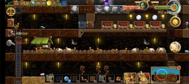 有些怪物会成群结队的来掠夺矮人资源,有些怪物会定期从传送门而来攻打矮人,因此,玩家还需要带领矮人建立攻防系统,在你的堡垒周围的路上设满陷阱和导弹塔,抵抗成群结队入侵而来的怪物。