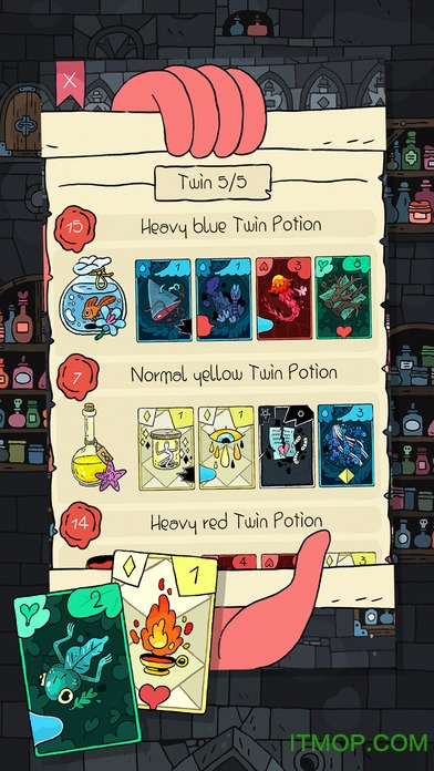 奇迹商人是一款由卡牌神偷原班人马打造的最新手游,游戏的画风都及其类似,但是更加的明艳和活泼.游戏的玩法依然是以卡牌为主,这次是以制造药水为主题,玩家要用各种各样的配料卡来制造药水来满足顾客.