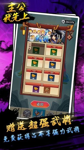 主公我先上 是一款以经典的三国元素为主题的手游,在游戏里玩家需要凭借自己的指挥攻城略地,游戏画风较好,可以让玩家感受到沙场的热血,将玩家带入到其中,喜欢这类游戏的朋友不要错过了,点击下载游玩吧。