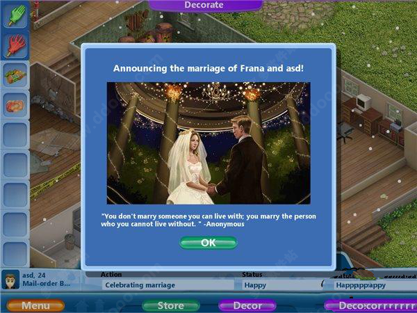 好吧这就是废话一句,没有配偶哪里来的孩子是不是?当我们选择好人物进入游戏后,请时刻注意屏幕右上方的邮件提醒,是的,你小人今生的伴侣是通过网恋获得的!拖拽小人至电脑及时查收邮件可以获得各式相亲对象信息,当看到中意的对象时选择Marry结婚(Reject为拒绝)。